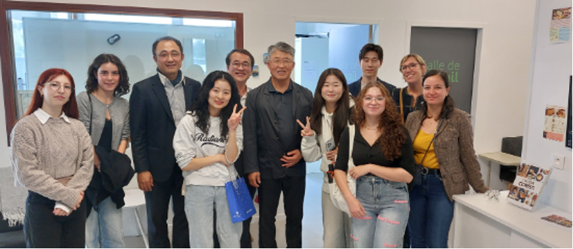 图:崔基周校长一行与在南特大学学习的亚洲大学交换生