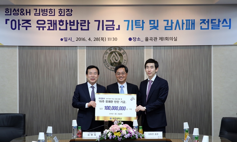 김동연 총장을 비롯한 우리 학교 관계자들이 세계한인무역협회(이하 월드 옥타, World-OKTA) ‘제18차 세계대표자대회 및 수출상담회’에 참석했다. 월드 옥타는 세계 각국에서 활동하는 한인 기업인들의 경제·무역 단체로 우리 학교와 긴밀히 교류·협력하고 있다. 지난 22일부터 3박4일간 울산에서 열린 ‘제18차 세계대표자대회 및 수출상담회’에는 김동연 총장과 최경희 산학부총장, 소병천 국제협력처장이 참석했다. 우리 학교 관계자들은 월드 옥타 박기출 회장, 김기현 울산시장 등과 상호 협력·교류 방안에 대해 논의했다. 월드 옥타는 그동안 우리 학교와 학생 인턴십, 글로벌 스타트업 아카데미 공동 운영 등에 관해 긴밀히 협력해왔다. 최근에는 월드 옥타 회원사 20개 기업에서 우리 학교 학생 30여명을 인턴으로 수용하겠다는 의사를 밝히기도 했다. 이들 기업은 북미(미국, 캐나다), 유럽(루마니아, 헝가리), 동남아(말레이시아, 태국 등), 중국, 일본 등 다양한 지역에서 활동하고 있다. 글로벌 인턴십 프로그램은 ‘파란학기제-아주 도전학기 프로그램’과 연계해 진행될 예정이다. 한편 김동연 총장은 대회 기간 중인 23일 열린 에서 ‘유쾌한 반란 시즌2’를 주제로 강의했다. 김 총장은 “대한민국 제조업의 중심지인 부산, 울산, 포항 등 동남권 벨트가 위기 상황에 직면해 있다”며 “그 근본적 원인에 대한 힌트를 알파고와 이세돌의 대결에서 찾아볼 수 있다”고 전했다. 그는 이어 “알파고와 이세돌의 대결은 ‘정석’에 대한 의문을 던졌다”며 “‘정답’만을 찾으려는 습관을 버리고 비판적·창의적인 생각을 통해 정해진 틀을 깨야 하며, 이를 통해 혁신과 불균형을 시정하는 관용을 가져야 한다”고 진단했다. 김동연 총장의 강연에 이어서는 김경호 LINC 사업단 부단장이 ‘월드 옥타-아주대 글로벌 스타트업 아카데미’ 운영 계획에 대해 발표했다. 아카데미에서는 ▲국내외 청년 창업 지원 ▲해외 동포 기업 지원 등을 진행할 예정이다. 임군진 LINC 사업팀장을 비롯한 실무진은 ‘월드 옥타-아주대 글로벌 스타트업 아카데미’와 차세대 리더 모국 방문 교육 등에 대해 월드 옥타 측과 구체적인 논의를 진행했다.