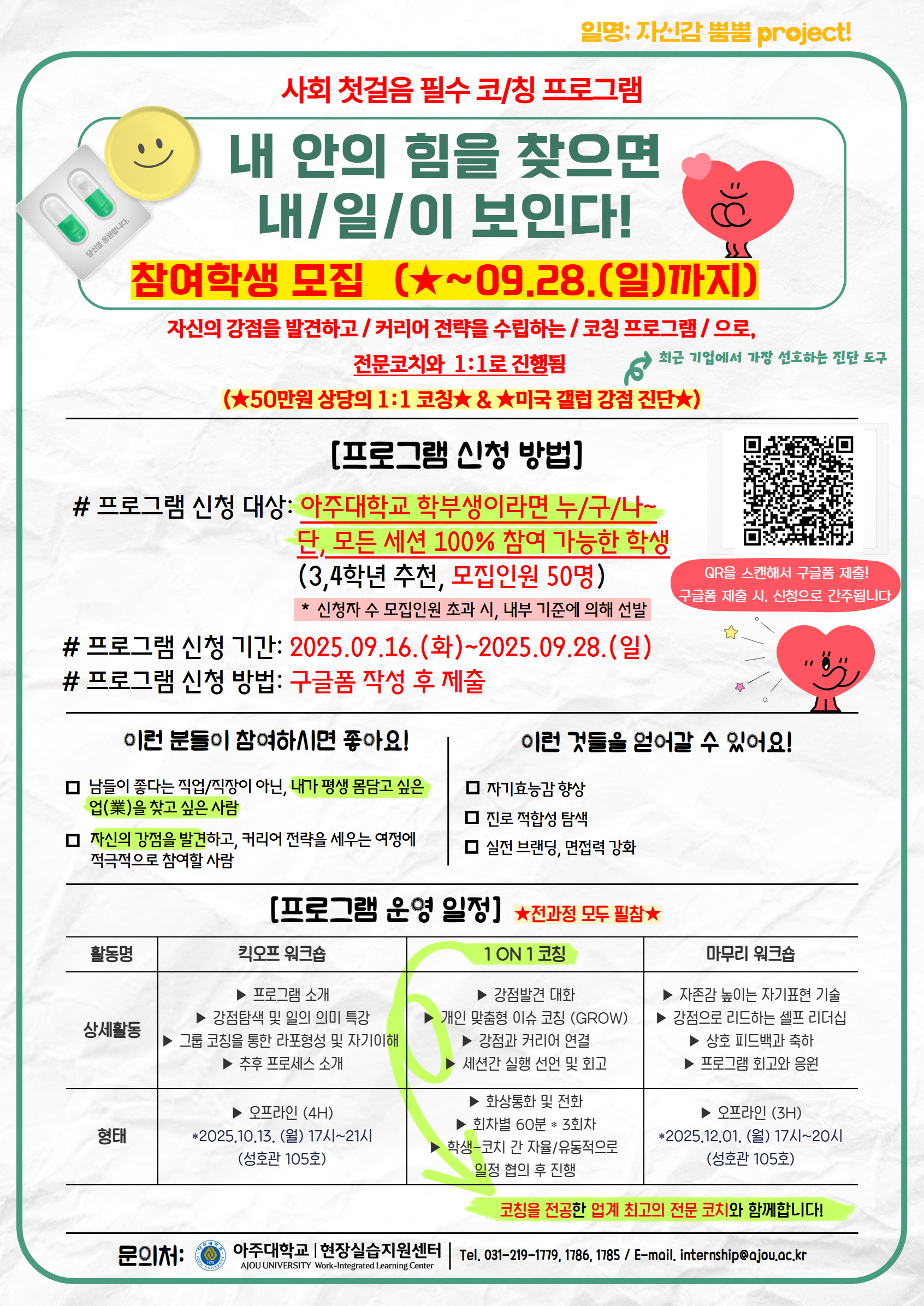 📬[재공지] "내 안의 힘을 찾으면 내/일/이 보인다!" 사회 첫걸음 필수 코칭 프로그램 참여학생 모집 (★~09.28.(일)까지)