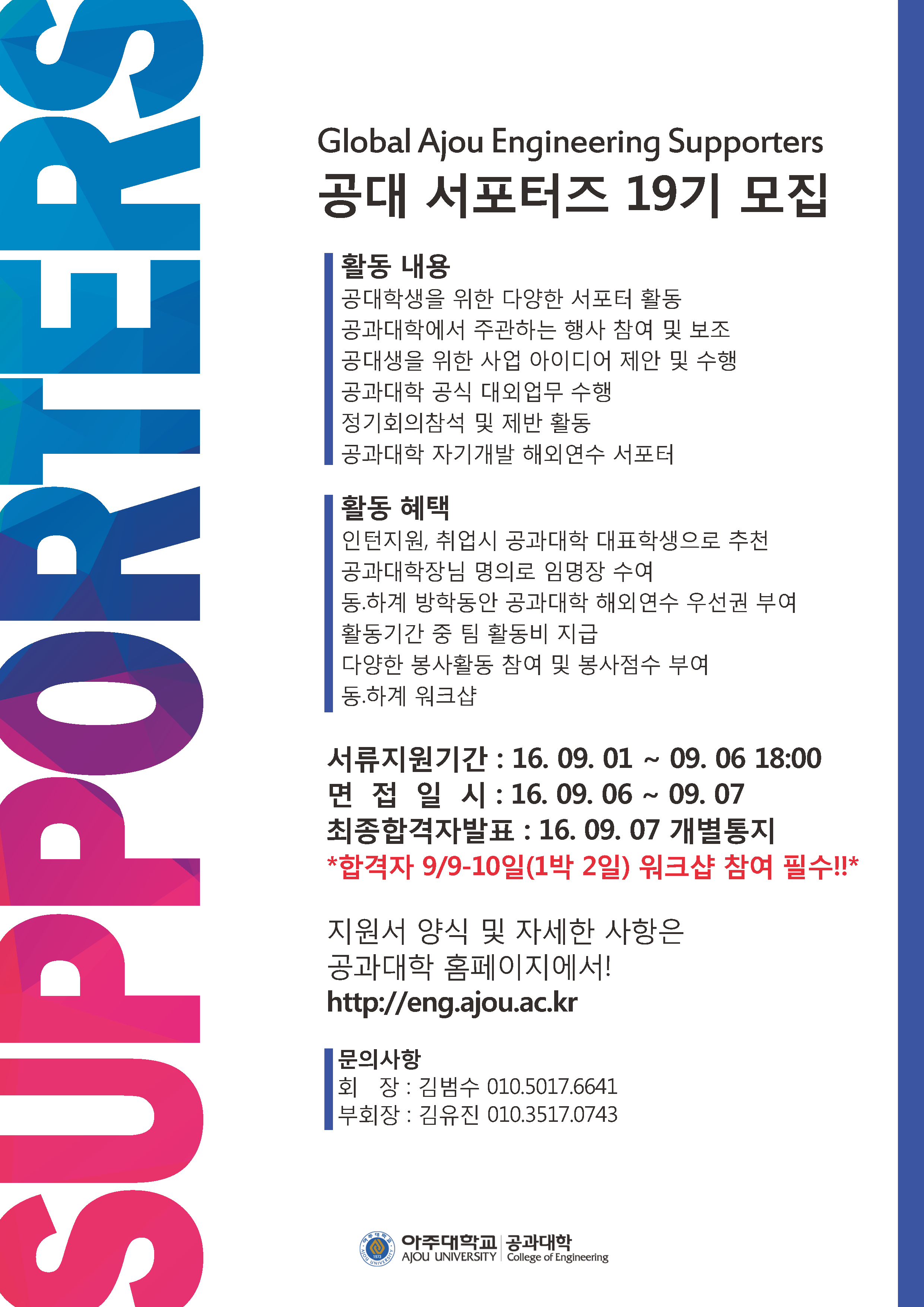 [재공지][공과대학 서포터즈] 19기 활동부원 모집