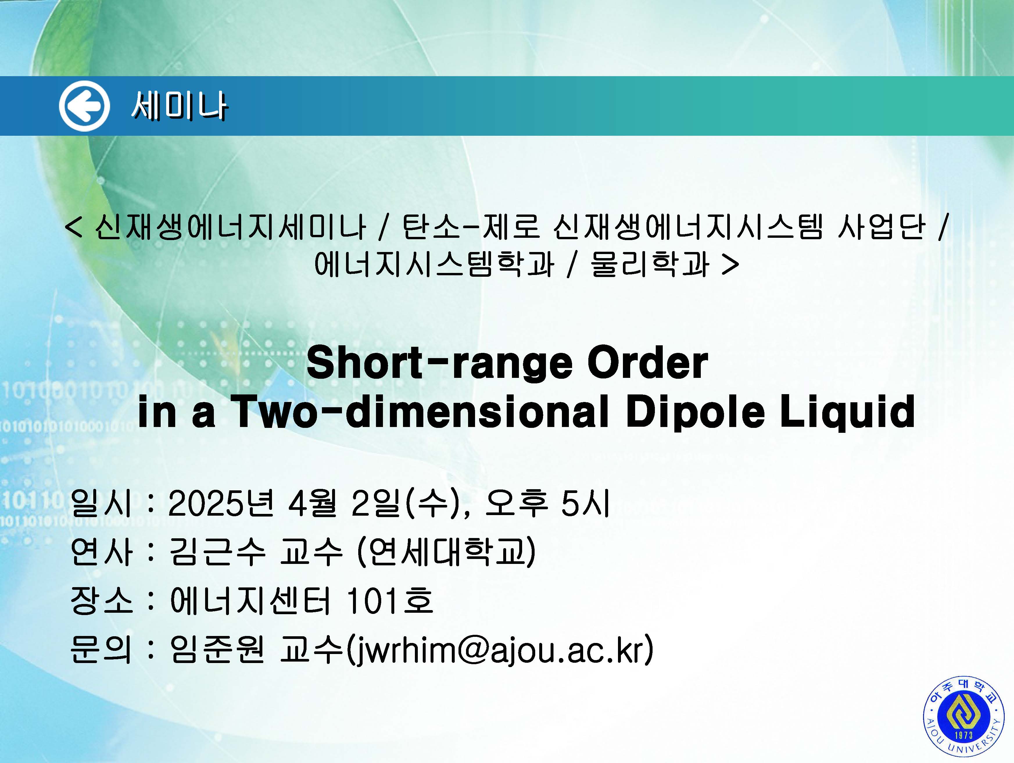 | 1733 | 세미나/포럼 | 교내 | 2025-04-02 | ||