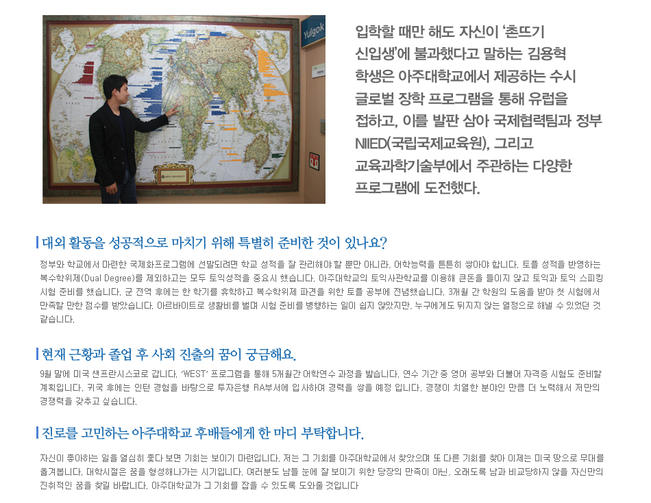 Home   Special Theme Grobal Univ. Ajou People in Ajou Zoom in Ajou Ajou News